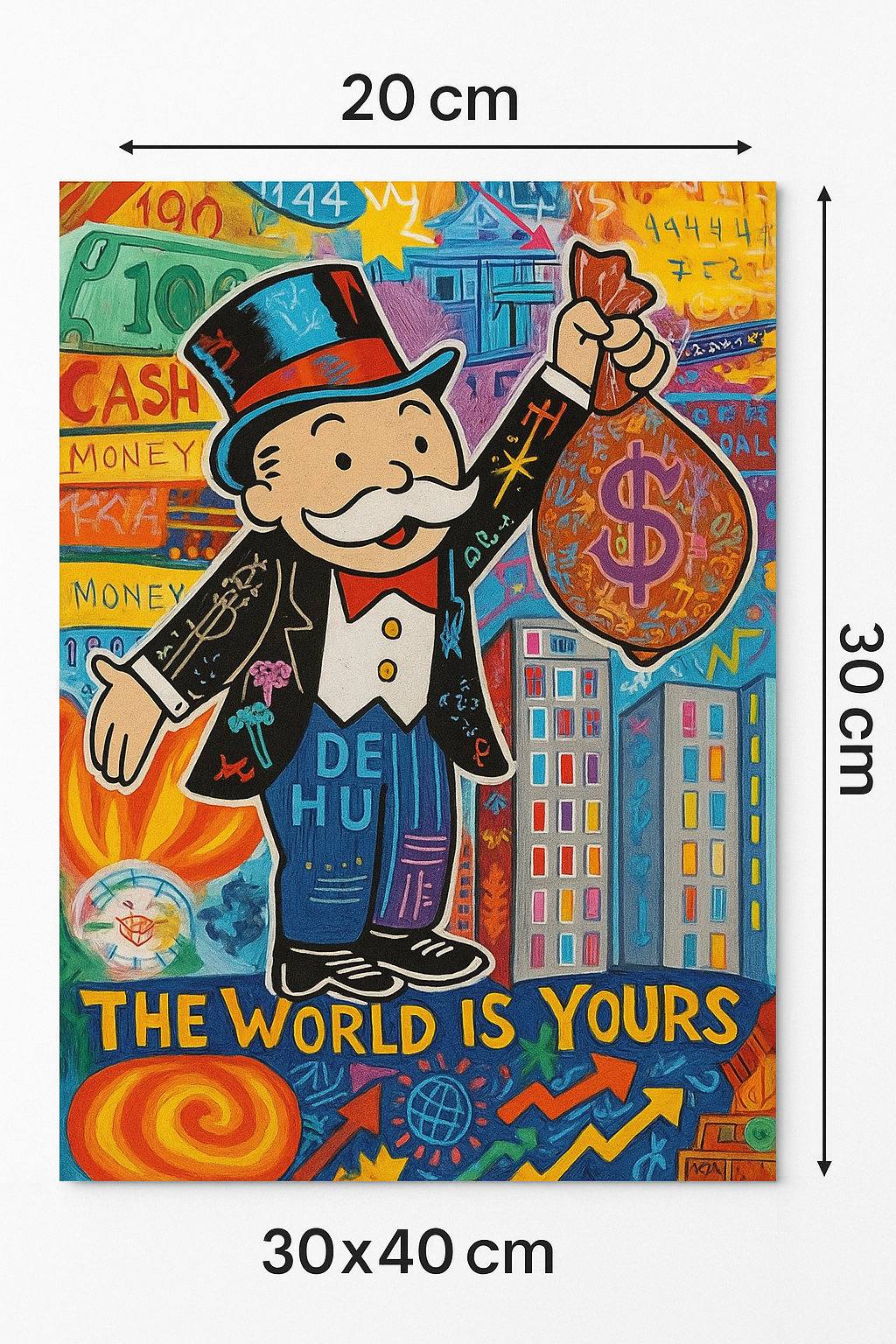 Monopoly Moves transforms the iconic Monopoly Man into a modern symbol of fashion, culture, and unapologetic ambition. Infused with Banksy-inspired edge and abstract energy, this framed canvas speaks to the strategist, the visionary, the one who knows life is art and money is movement.