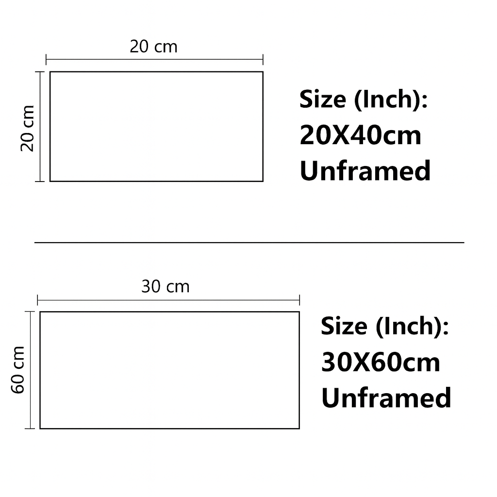 Size (Inch): 100X200cm Unframed20X40cm Unframed30X60cm Unframed40X80cm Unframed50x100cm Unframed60x120cm Unframed70X140cm Unframed80X160cm Unframed90X180cm Unframed100X200cm Unframed
