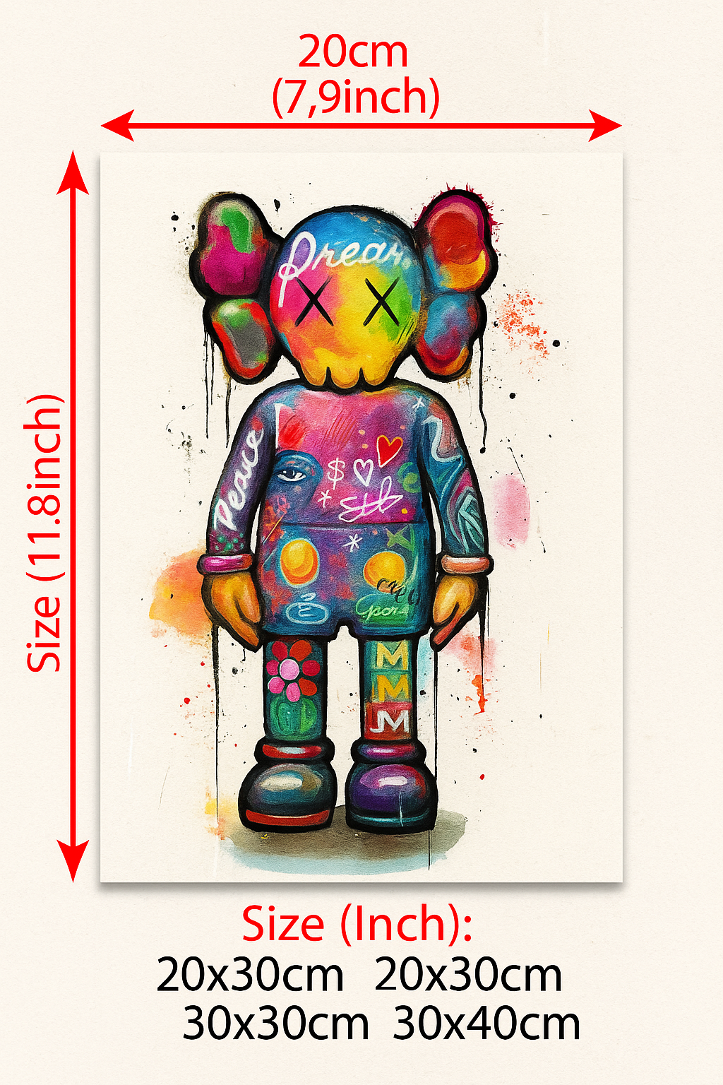 Companion Color brings the iconic Kaws figure to life in vibrant, contemporary hues fusing bold graphic design with pop culture edge. Perfect for hypebeast-inspired interiors, modern living rooms, or creative workspaces, this poster print or canvas commands attention with every glance.