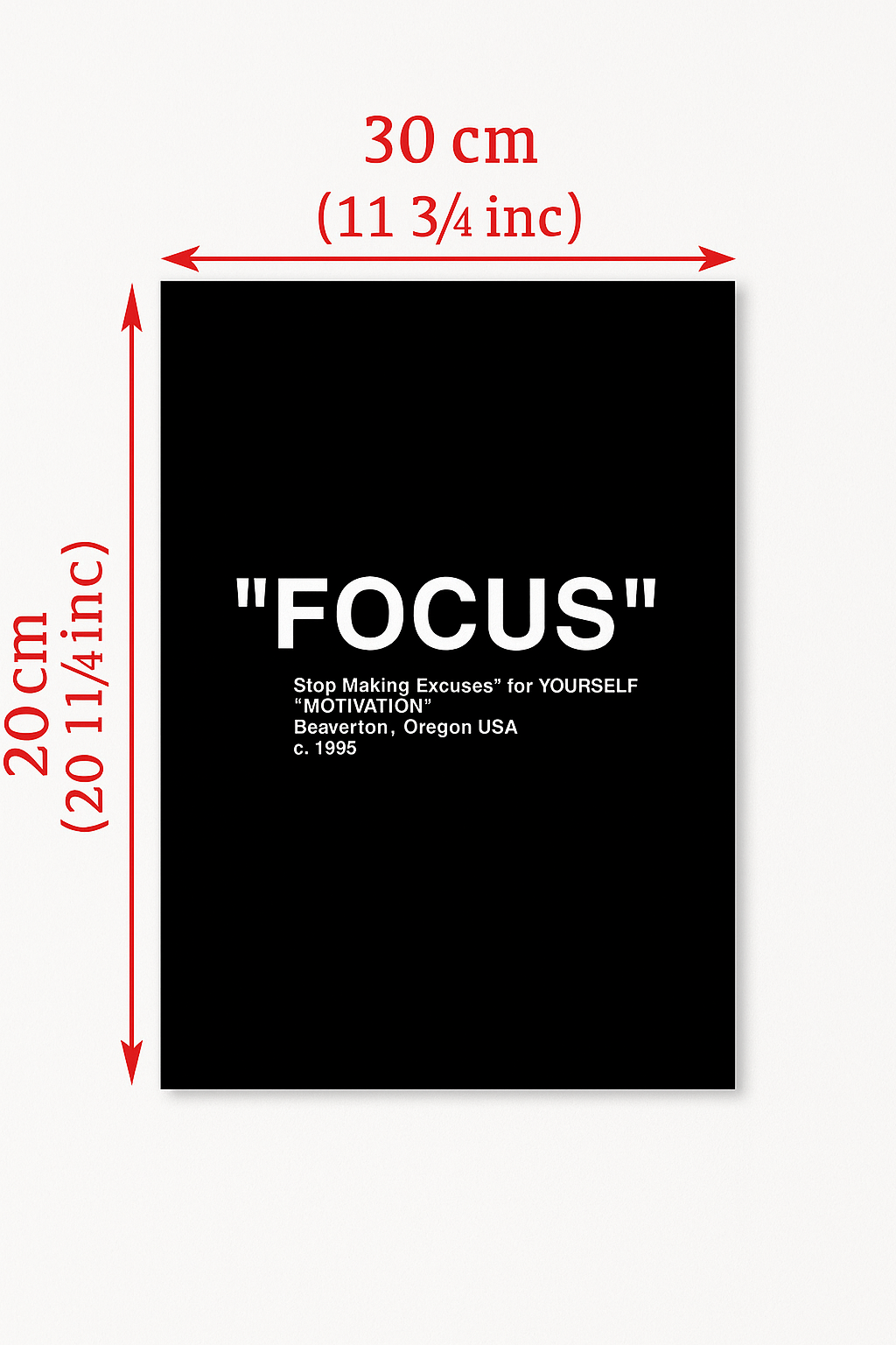 Focus isn’t just a word it’s the power behind every breakthrough. This sleek motivational print features a crisp definition of “Focus” paired with a modern success quote, designed to transform any office, studio, or workspace into a hub of determination and clarity.