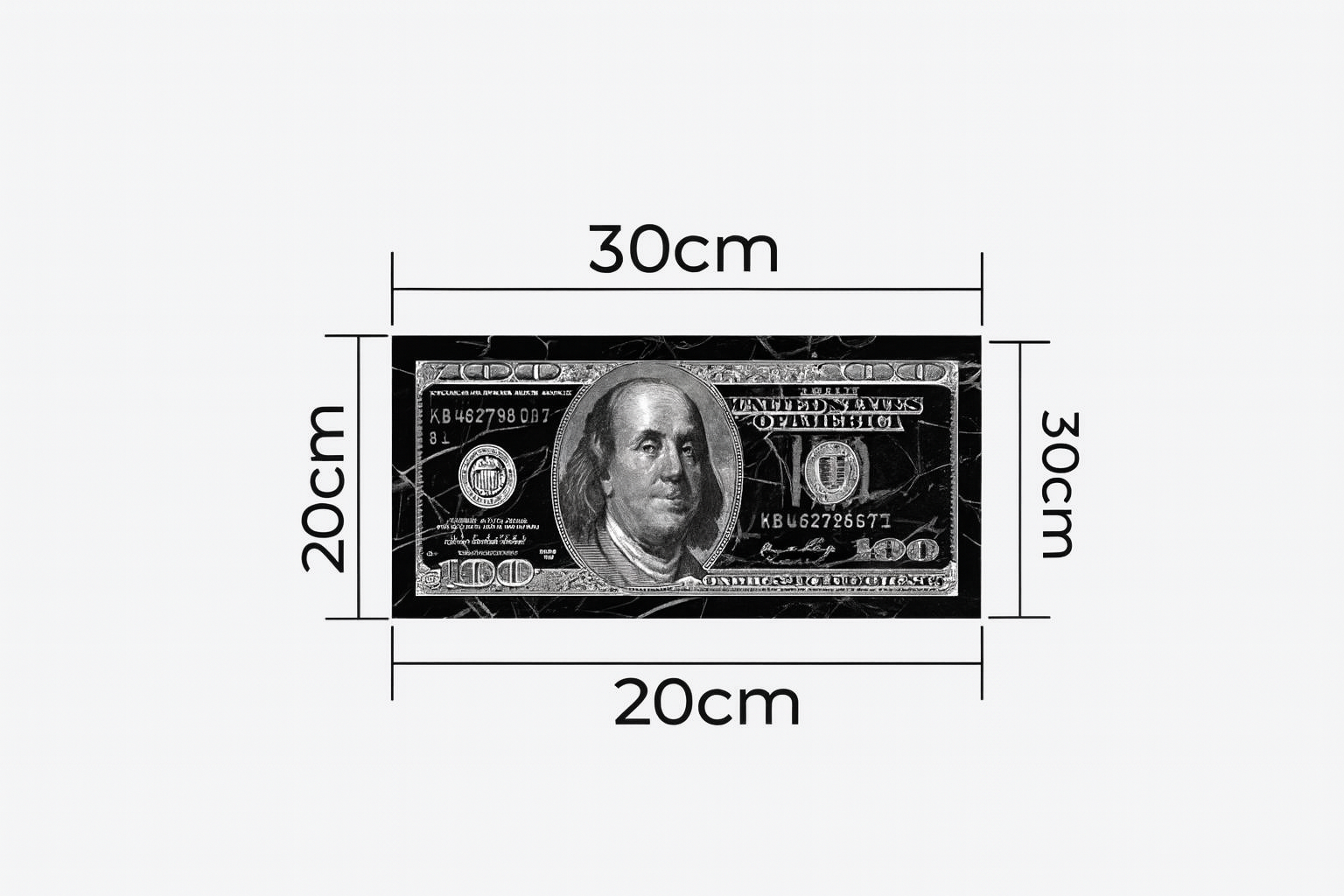 Black Reserve is the quiet flex. A bold reinterpretation of the classic dollar bill, this monochrome canvas turns currency into modern art minimalist, striking, and layered with symbolism. It speaks to power without shouting, making it the perfect visual anchor for spaces built on focus and intention.