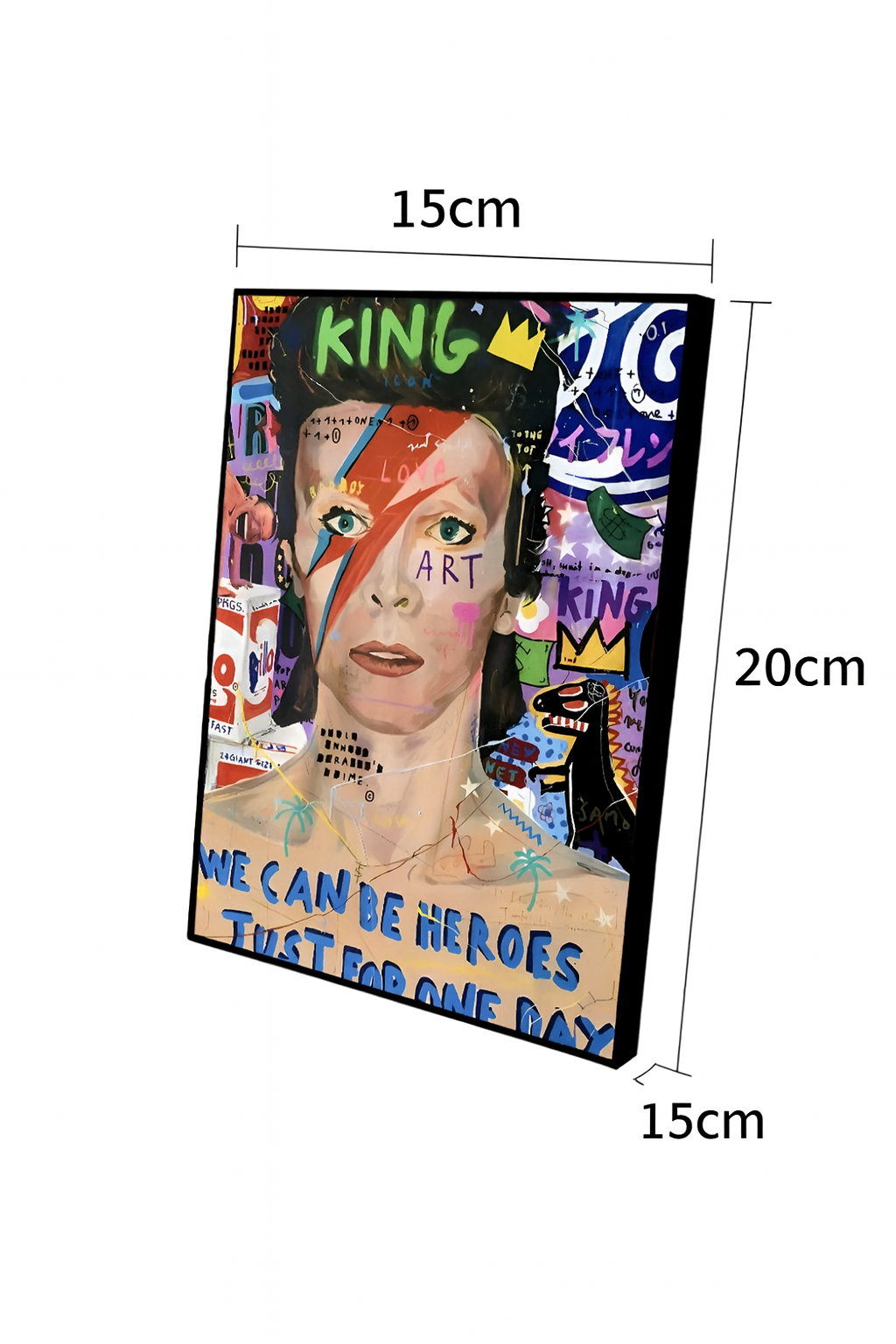 "Stardust Voltage" captures the electric soul of David Bowie in a burst of neon energy. With the iconic lightning bolt glowing across the canvas, this piece merges music, rebellion, and identity into one bold visual anthem. It’s more than art. It’s a celebration of fearless transformation.