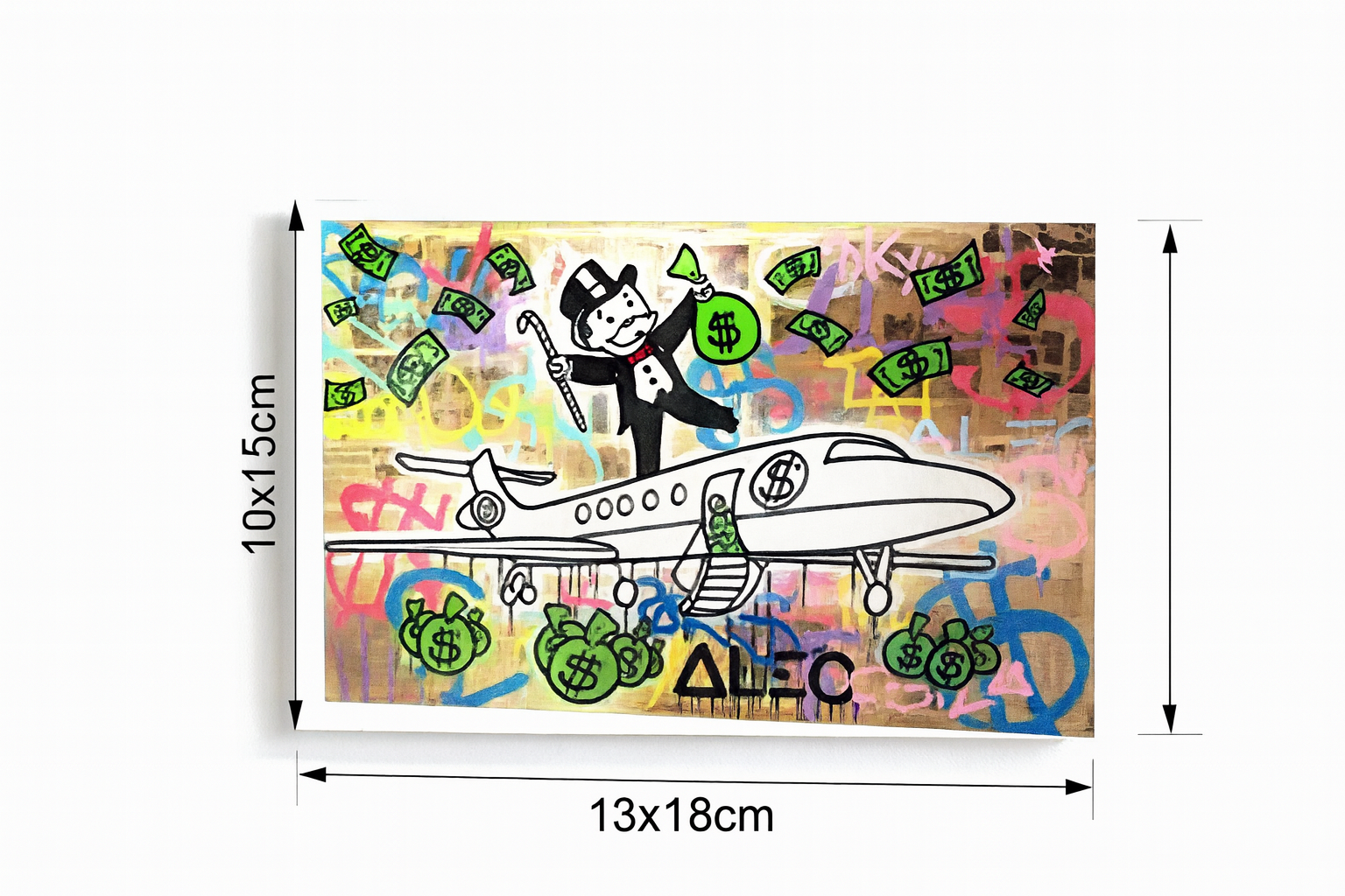 The Monopoly Hustle brings Alec Monopoly’s iconic flair into your space with color, confidence, and a whole lot of cash energy. Featuring the legendary Monopoly Man in bold pop art style, this wall décor is a celebration of ambition, risk, and reward.
