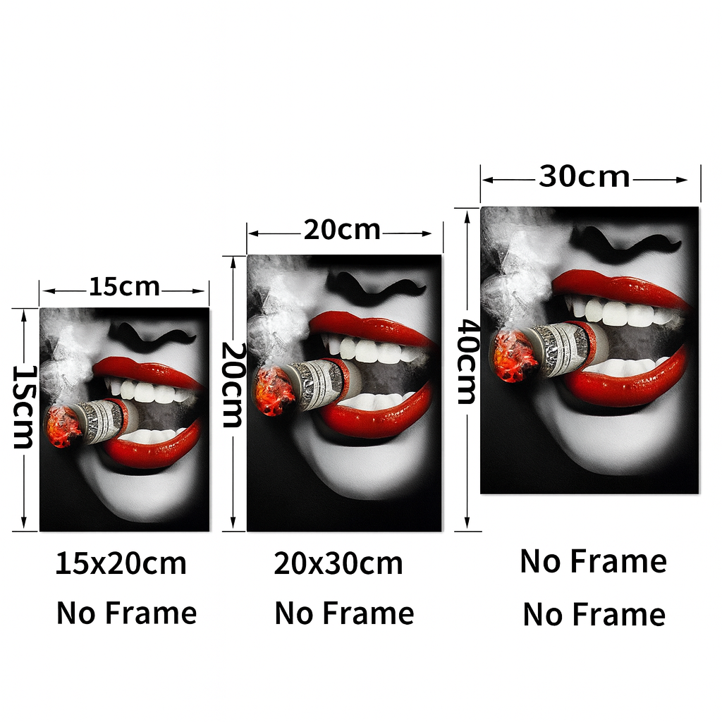 Velvet Smoke is a bold portrait of fierce femininity smoke curling, lips painted in defiance, and a money cigar burning with unapologetic power. This canvas captures the essence of a woman who commands the room without saying a word. A fusion of luxury, mystery, and modern edge, it’s the perfect art statement for those who love their décor with attitude.