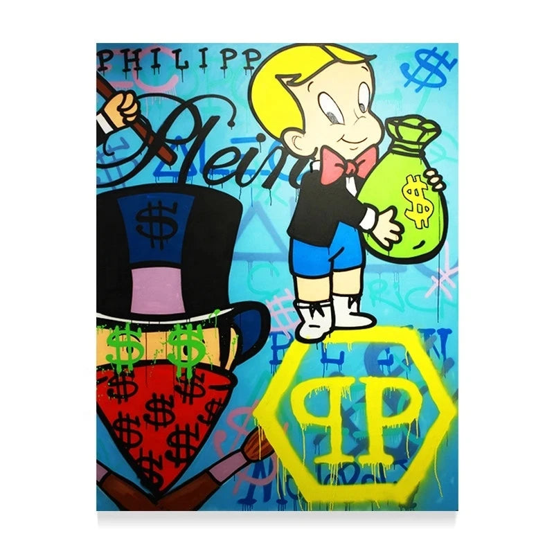 Coded in Cash is more than wall art it’s a celebration of hustle culture, legacy, and bold identity. Designed in the spirit of graffiti rebellion and pop-art wealth, this Alec Monopoly–inspired canvas fuses cartoon nostalgia with modern edge. It's rich in color, layered in meaning, and unapologetically loud, just like the stories we wear and the dreams we chase.