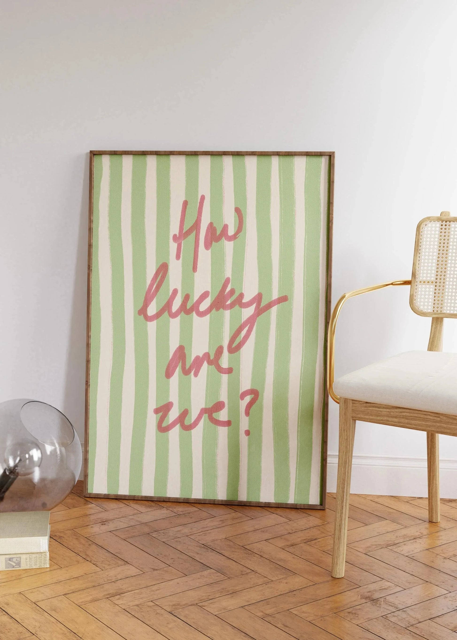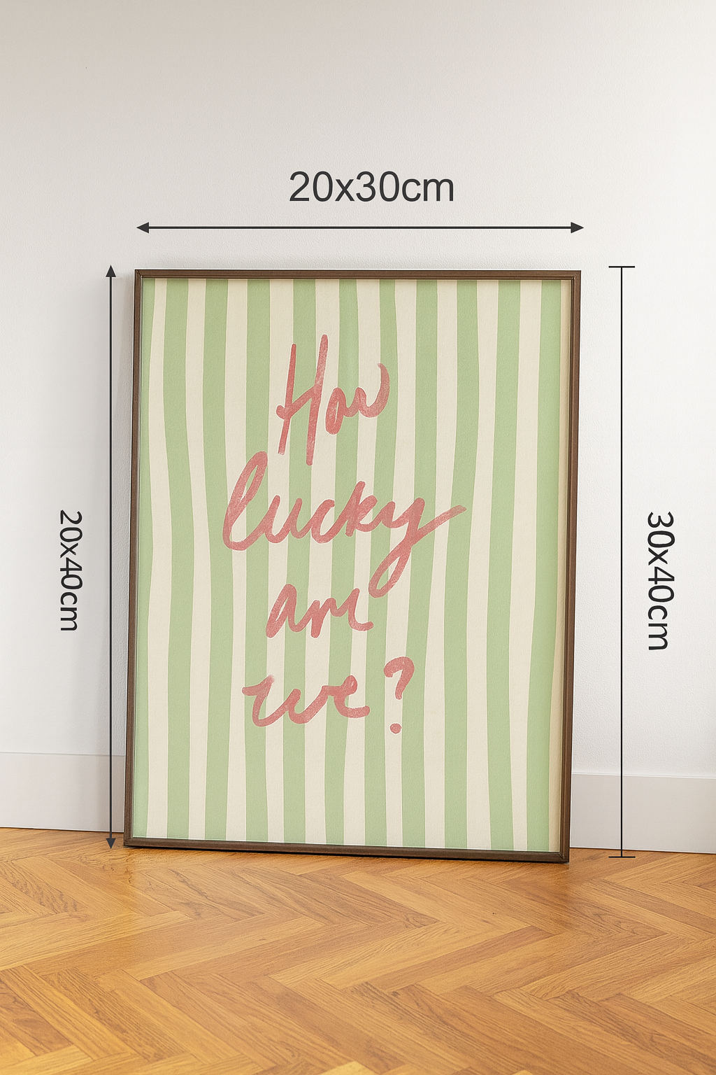 How Lucky Are We is a soft and soulful reminder of the beauty in everyday connection. Printed in calming sage green, this elegant affirmation poster blends coquette charm with minimalist warmth perfect for dorms, bedrooms, reading nooks, or shared spaces that celebrate togetherness.