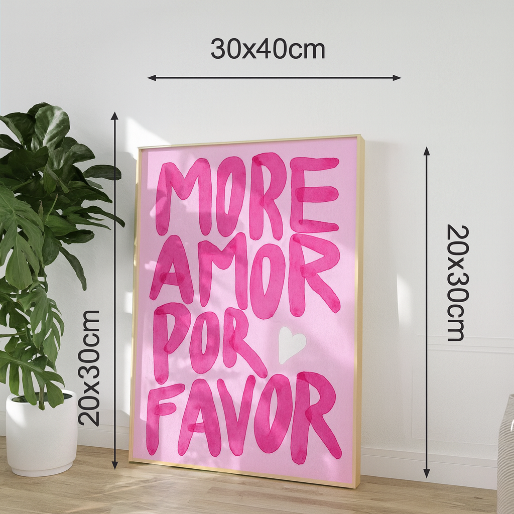 More Amor Por Favor brings soft charm and radiant mood to any space with its playful script and rosy pink palette. This trendy wall print adds a touch of joy and Latin flair to dorm rooms, bedrooms, or any corner that deserves more light and more love.