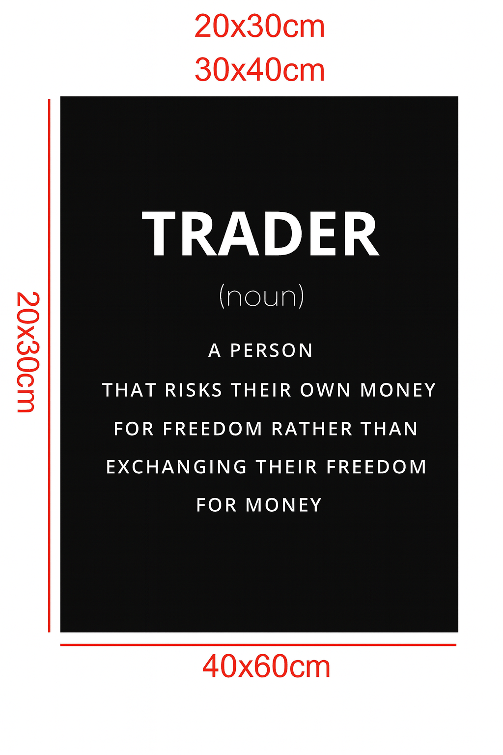 Day Trader is a bold, modern canvas designed for those who live by the market’s pulse. Featuring a crisp definition-style design paired with sleek typography, this artwork turns your trading room, office, or home workspace into a space of discipline, determination, and relentless ambition.