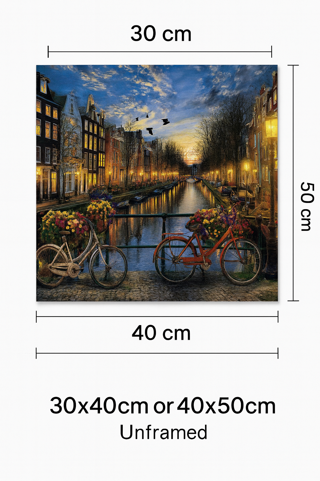 Canals of Light captures the quiet elegance of Amsterdam where bicycles lean into time, rooftops reflect centuries of story, and the water holds everything gently in place. This artwork is a love letter to a city that balances movement and stillness, tradition and change.