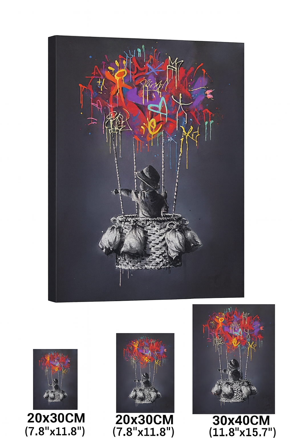 Lifted Voices captures the spirit of resistance and imagination through the eyes of a child his graffiti scrawl floating like a balloon, defying gravity and expectation. Inspired by the legendary tone of Banksy’s street art, this piece speaks without shouting, weaving quiet rebellion into every brushstroke.