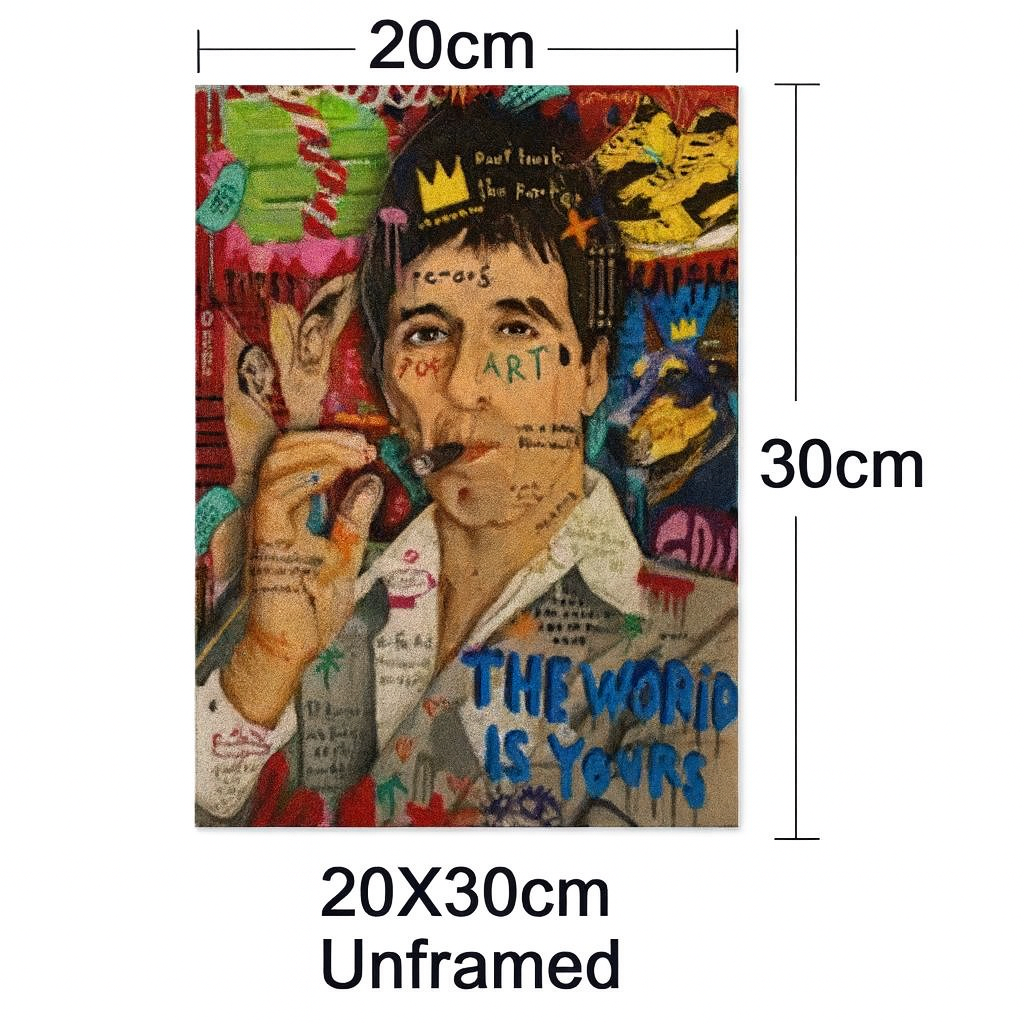 EMPIRE STAINED is a visual war cry for the bold, the unbroken, the ones who build legacy with bare hands and street-bred fire. This limited-edition Banksy-inspired canvas immortalizes Al Pacino’s Tony Montana in raw graffiti strokes where pop art meets rebellion and every color bleeds ambition.